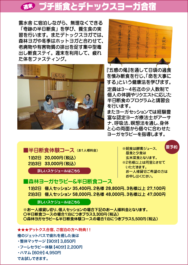 ●1泊2日 半日断食体験コース 20,000円(税込)