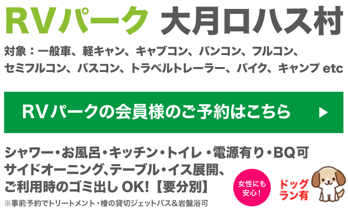 現在の「大月車中泊パーク」から「RVパーク大月ロハス村」になります。どうぞ引き続き宜しくお願い致します。
