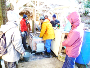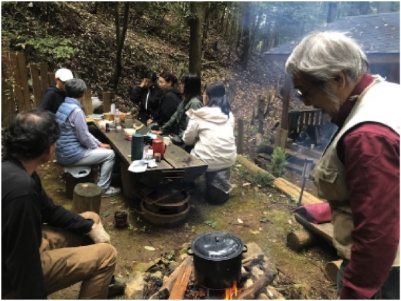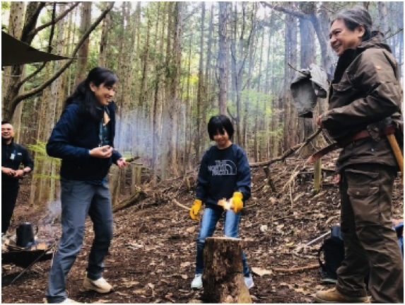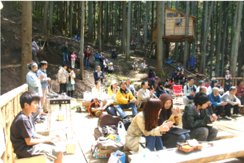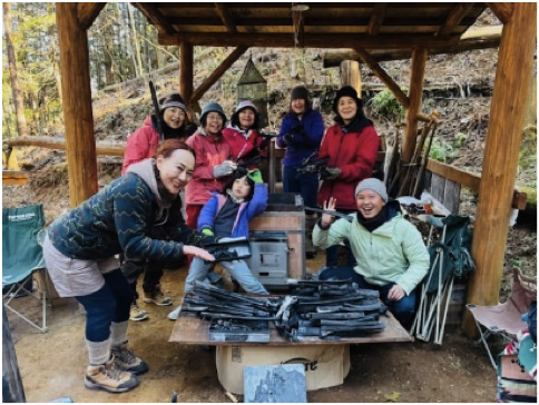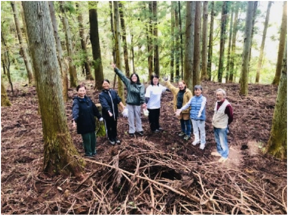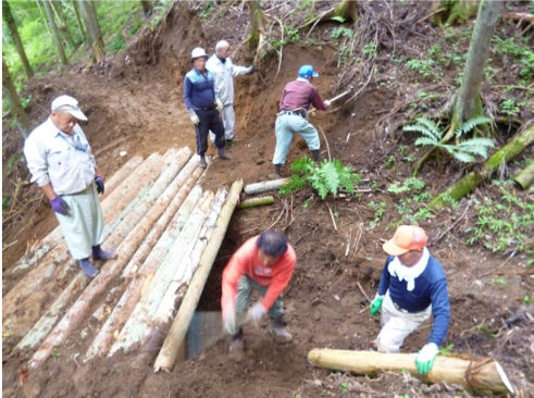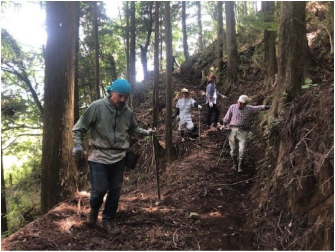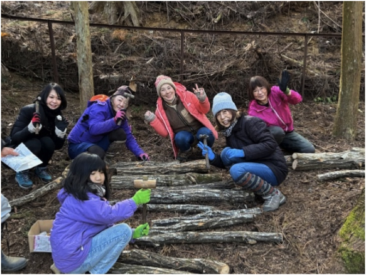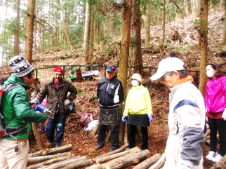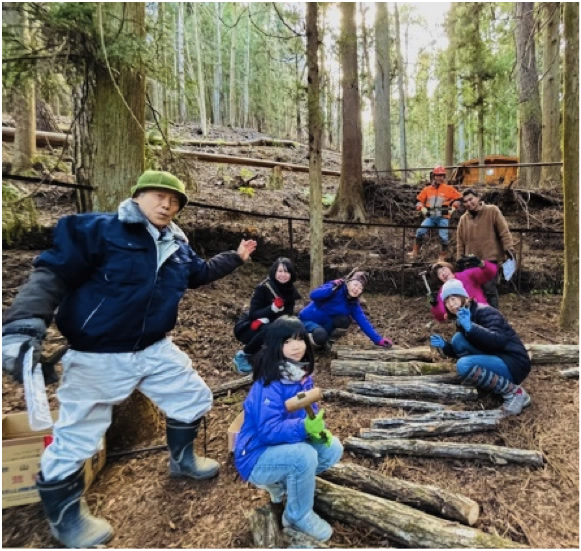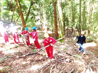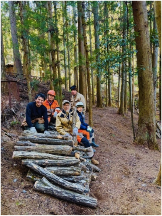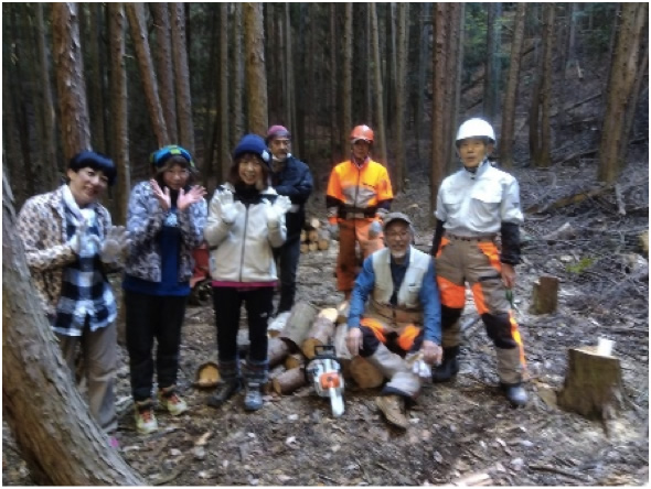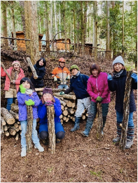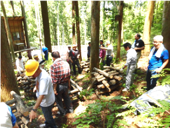 間伐材を国道に搬出できる道を敷設、林内の整備、森林を利用した里山体験会を実施。年間600人が参加、薪作り、炭づくり、原木椎茸の植菌等を行った。