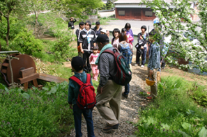 「梁川地球自給研究所」所長を講師に大地の再生のお話しとワークショップを行い側溝作りを行いました。