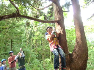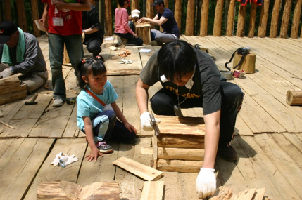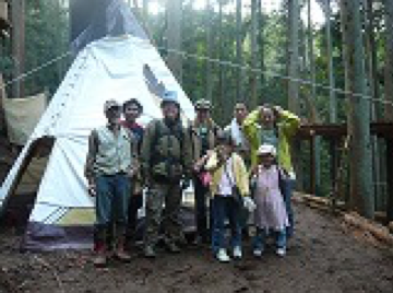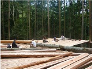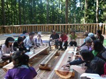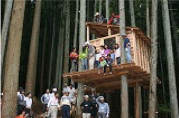●現地の丸太を利用した100畳のウッドデッキ里山に生育する小動物の観察会やムササビの巣箱作りの様子