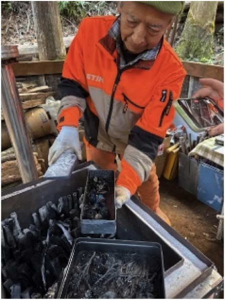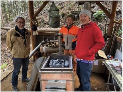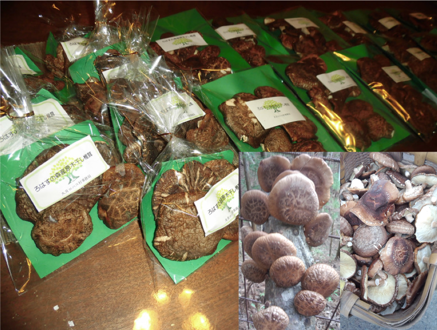 - 森林ボランティアのお手伝いで収穫した原木椎茸で初めての干し椎茸づくりを行い、今年は原木椎茸が何と!60kも収穫出来ました。その成果品で初めて干しシイタケの商品化にチャレンジ。